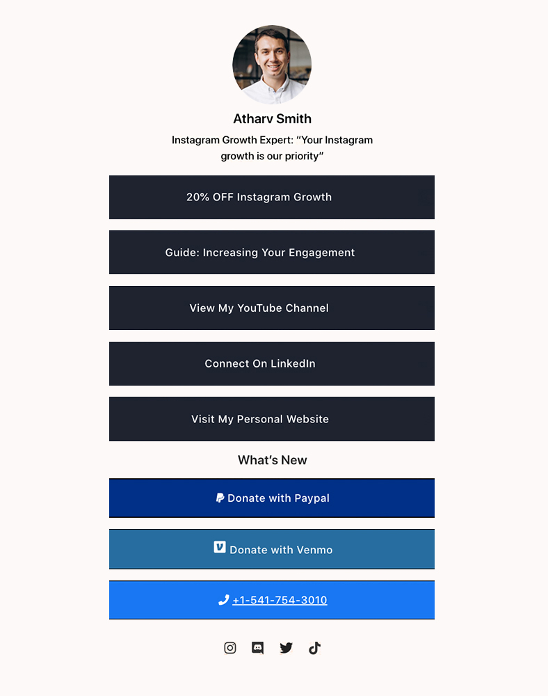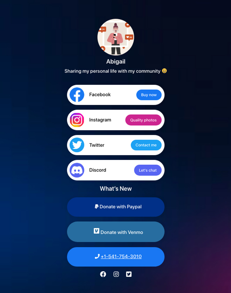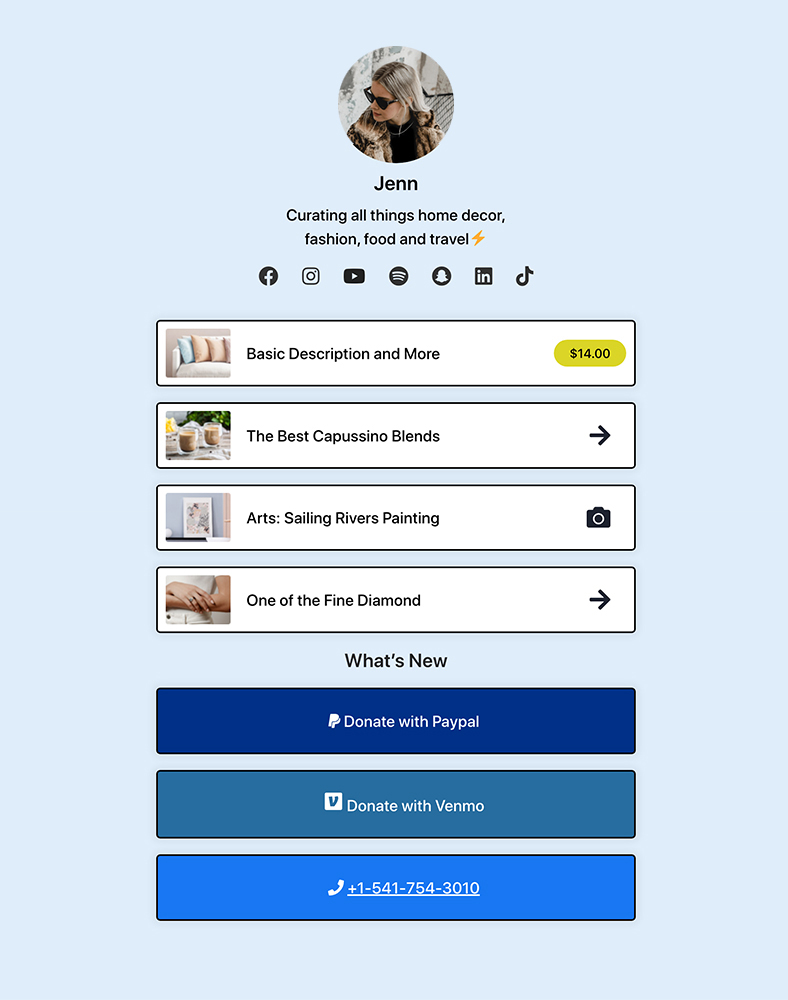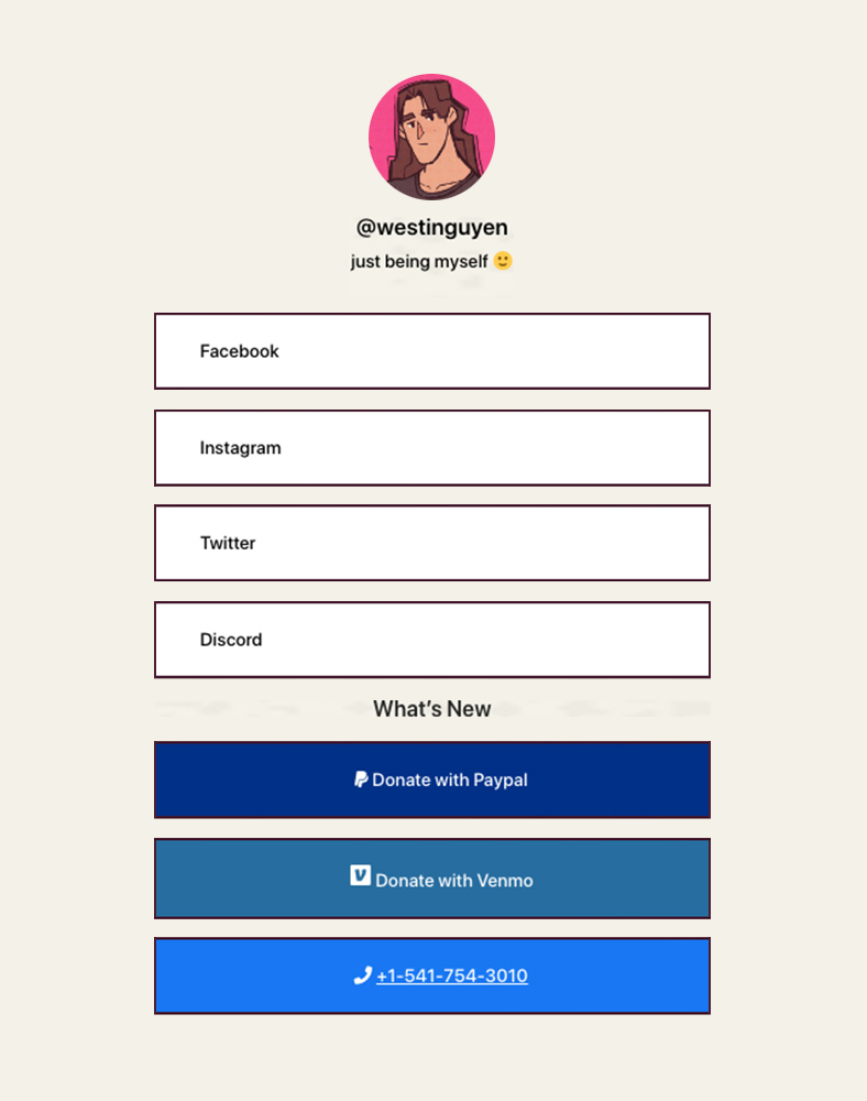 A link-in-bio tool solves this problem. You don’t have to remove one link just to add another. Everything you want to share online can live under a single link, and when you need to make an update, you only have to do it once.